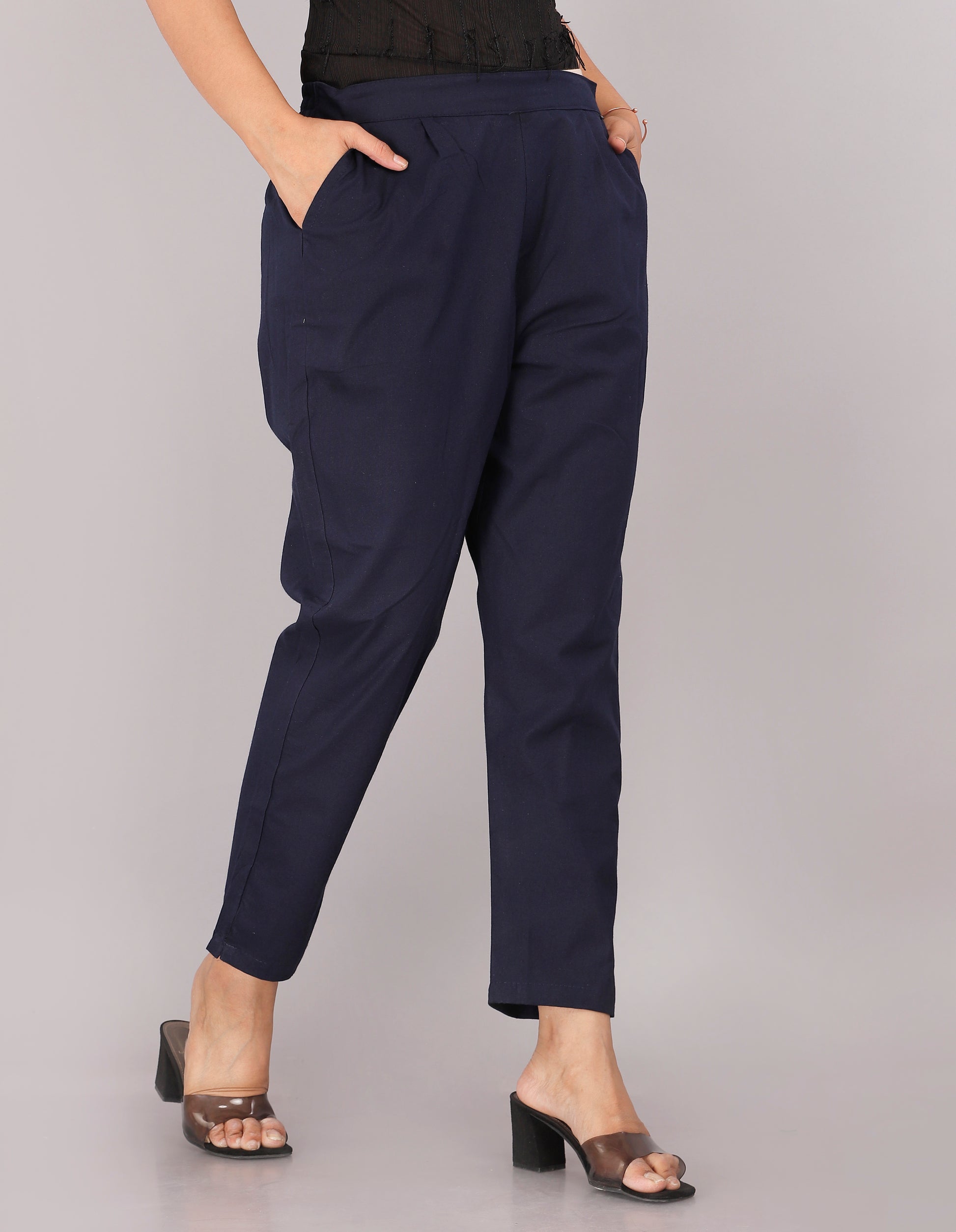 Women Regular Fit Dark Blue Pure Cotton Trousers